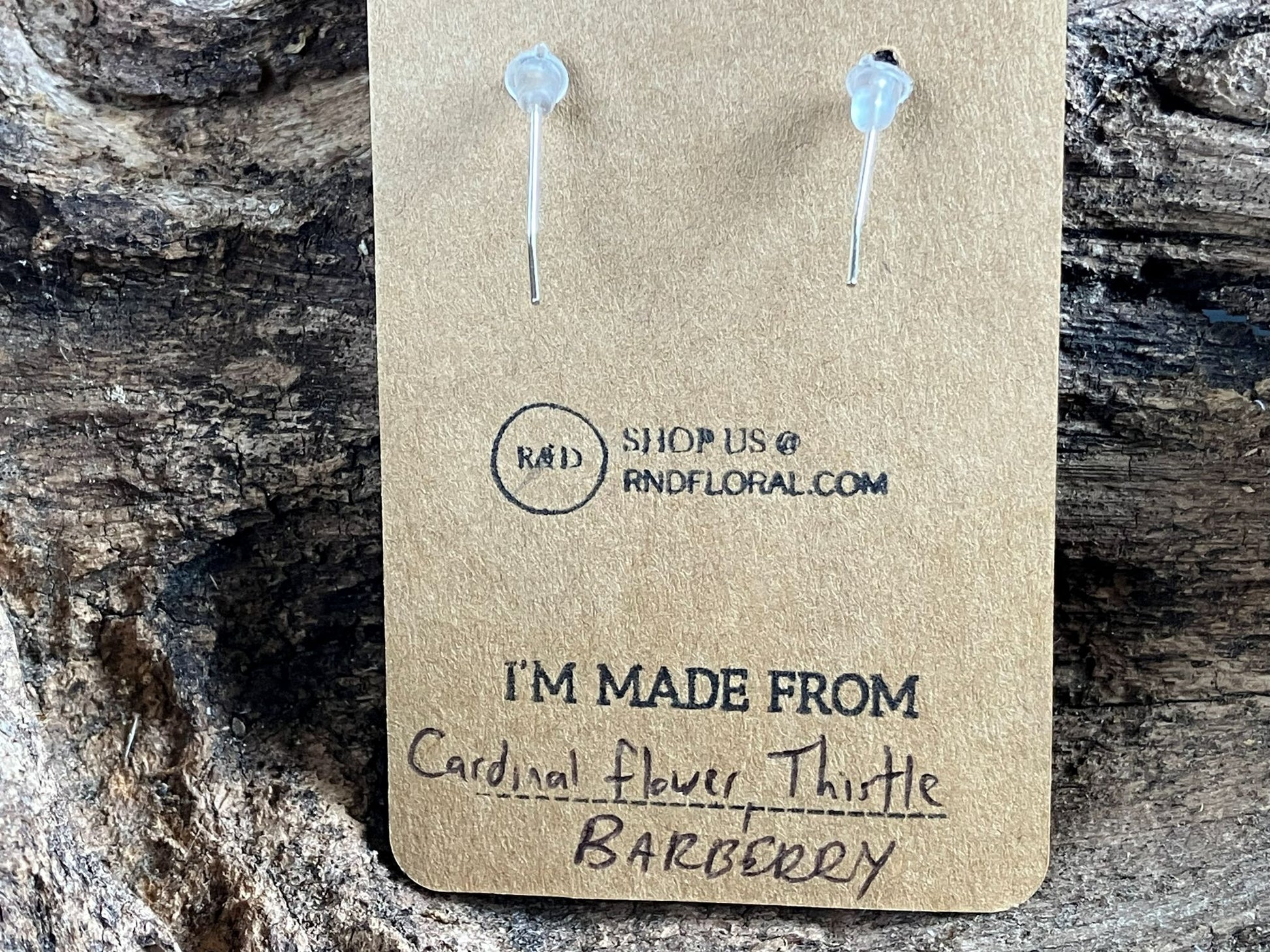 🌿 Cardinal Flower, Barberry & Thistle Wooden Resin Earrings