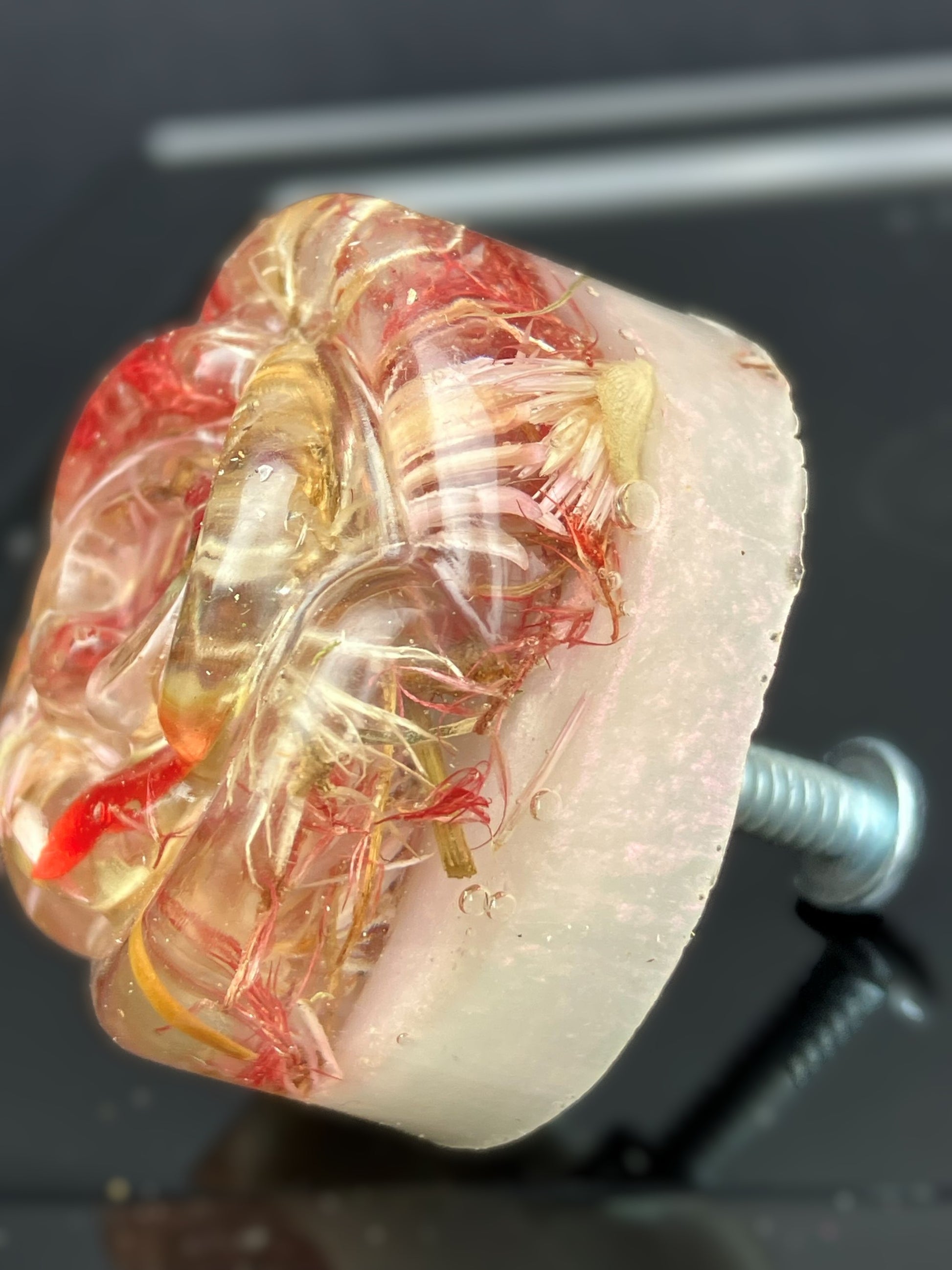Infuse your furniture with elegance and charm with this Romantic Floral Drawer Knob, featuring real rose petals, gomphrena, and pansies preserved in resin. Set against a creamy white background, the soft combination of pink, red, and white blooms creates a sophisticated, one-of-a-kind accent for any dresser, cabinet, or drawer.